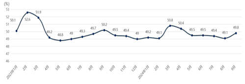 9月份,制造业采购经理指数(PMI)为49.8%,比上月上升0.7个百分点,制造业景气度回升。